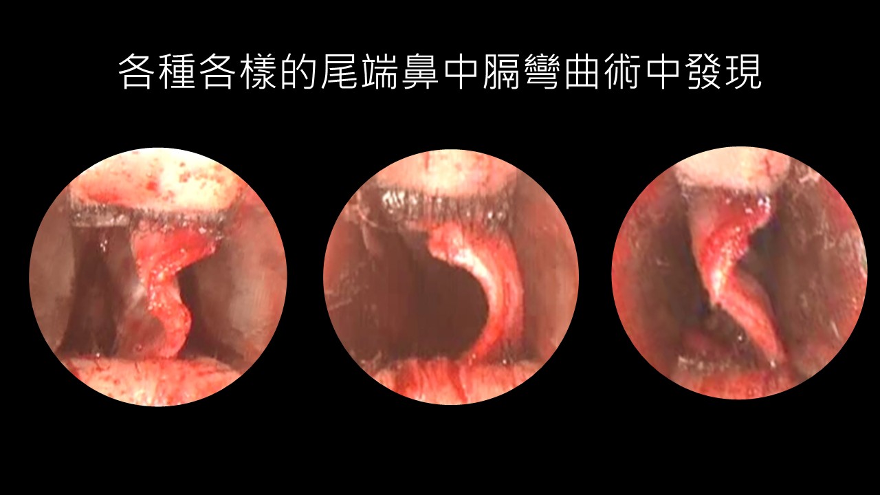 尾端鼻中膈彎曲變化多端,有左彎,有右彎,甚至還有S型。 |